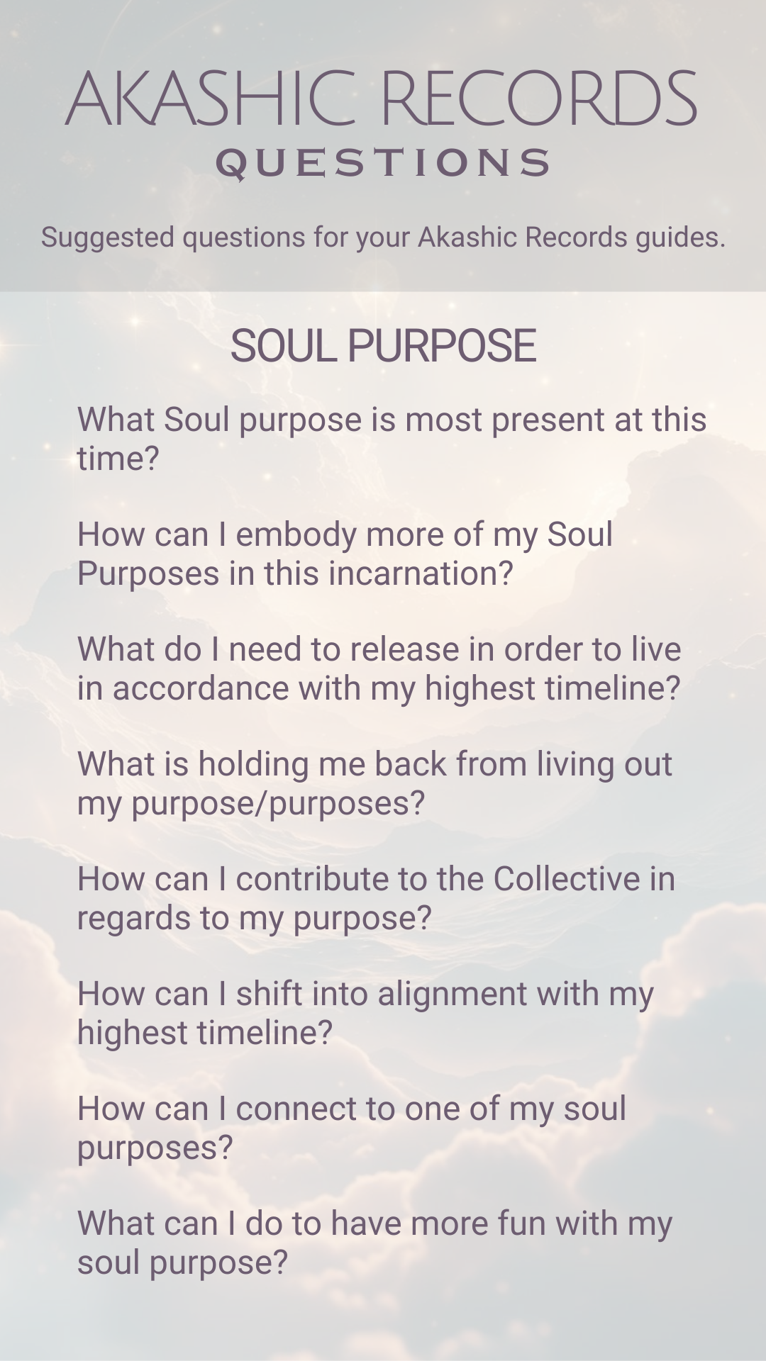 Soul Purpose, Business, Health, Relationships, Past Lives, Finances, Ancestors, Spiritual Development, etc…